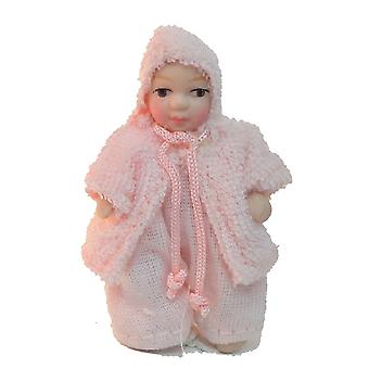Dolls House Baby Girl In Pink Jacket Miniature 1:12 Porcelain People
