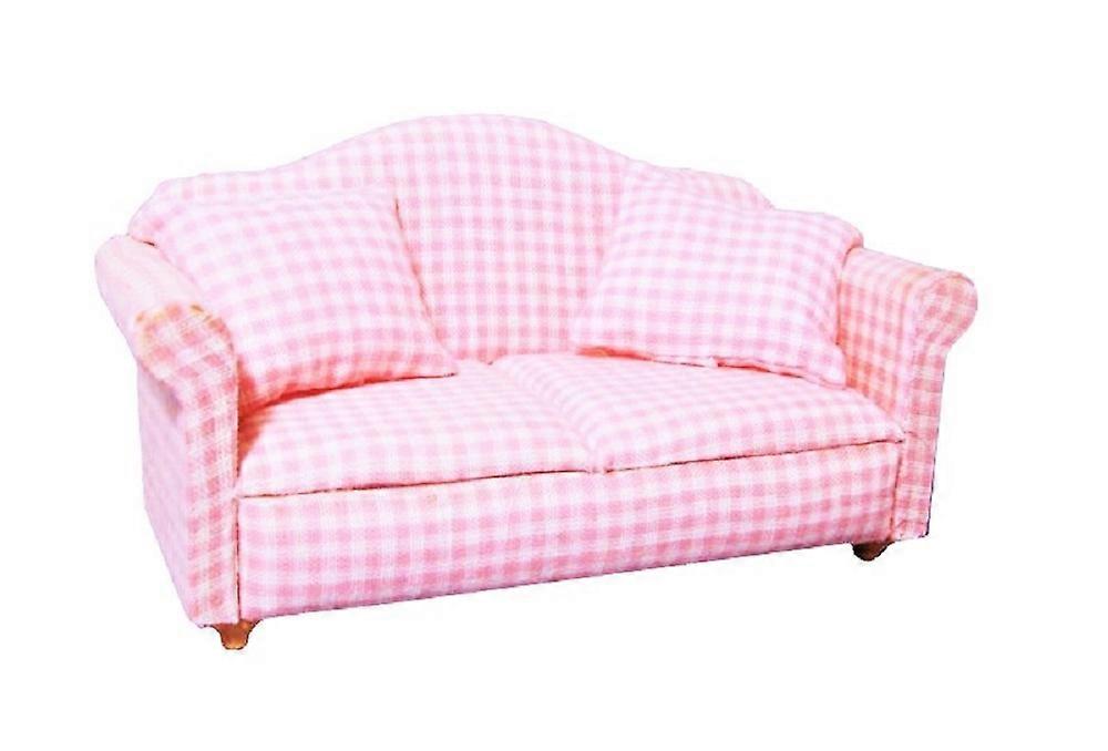 Dolls House Baby Pink Gingham Check Sofa Miniature Modern Living Room Furniture