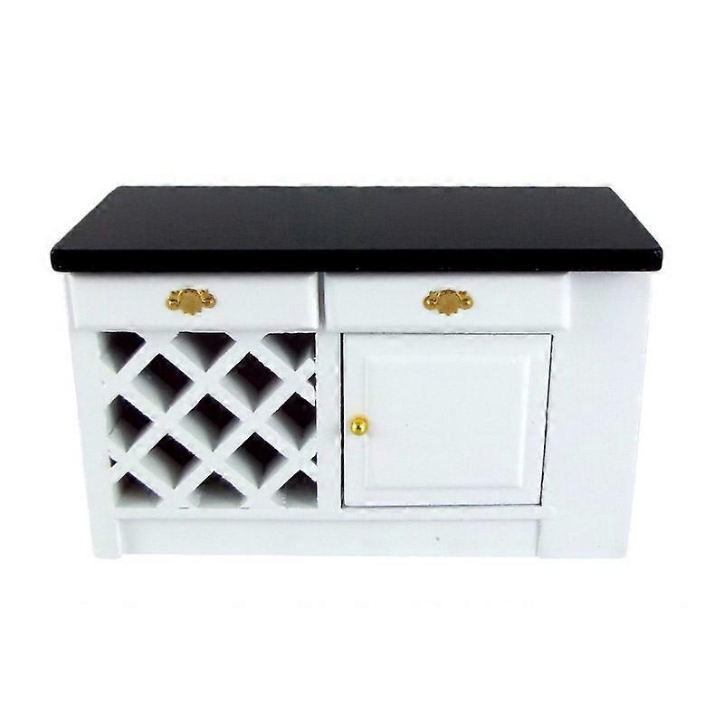 Dolls House Black & White Island Unit End Cabinet Miniature Kitchen Furniture