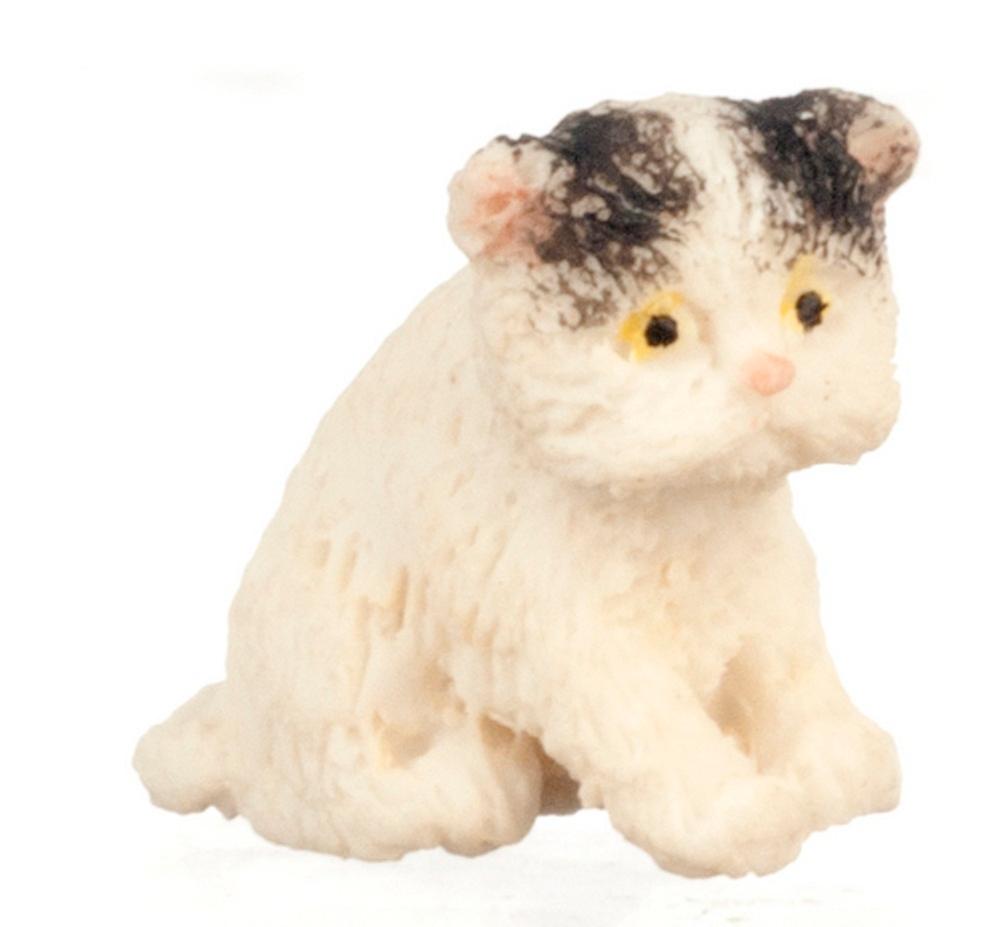 Dolls House Black & White Persian Kitten Sitting Miniature Pet Cat 1:12 Scale
