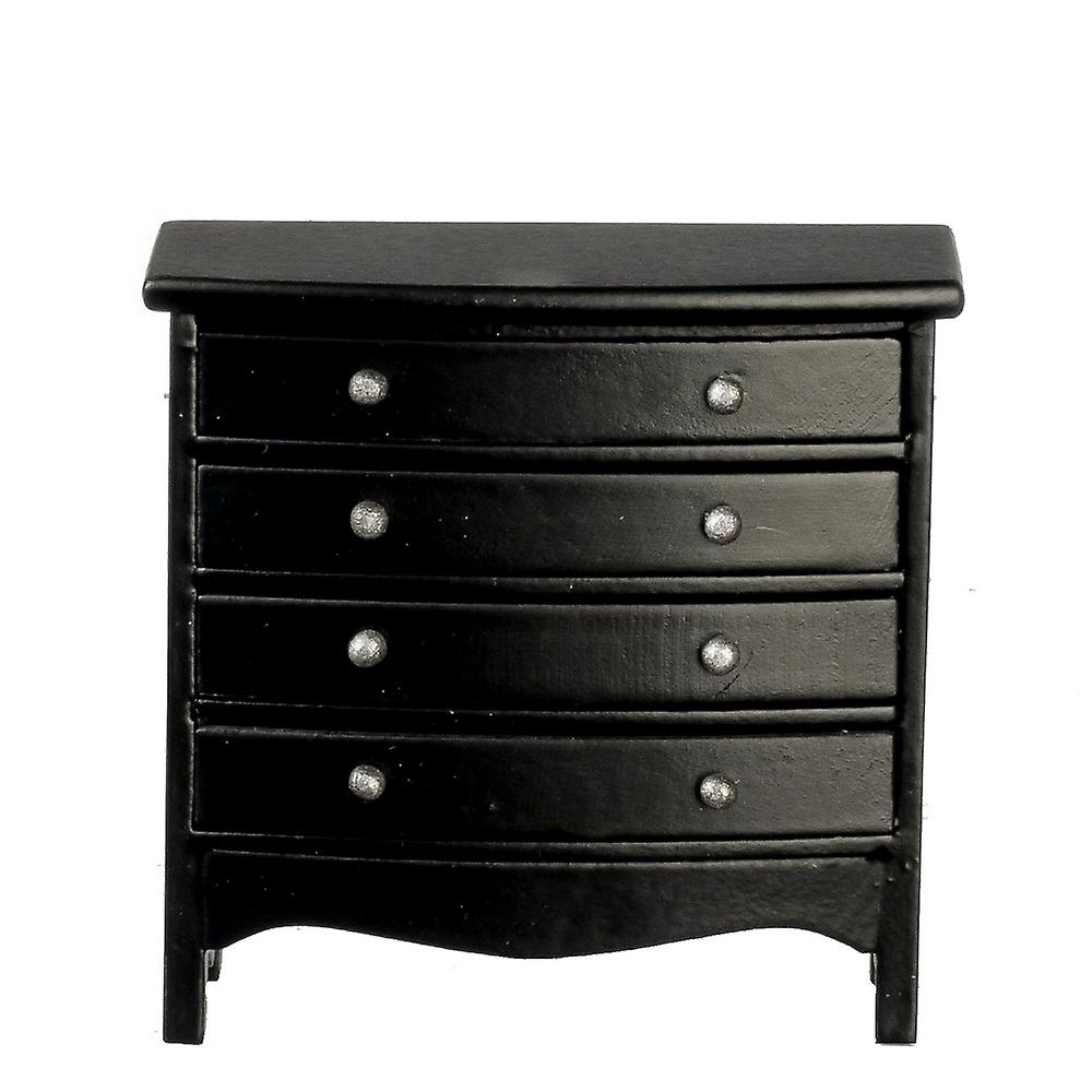 Dolls House Black Chest Of Drawers Wooden Miniature Bedroom Furniture 1:12 Scale