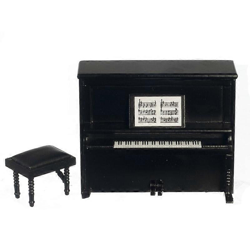 Dolls House Black Upright Piano And Bench Miniature Music Room Furniture