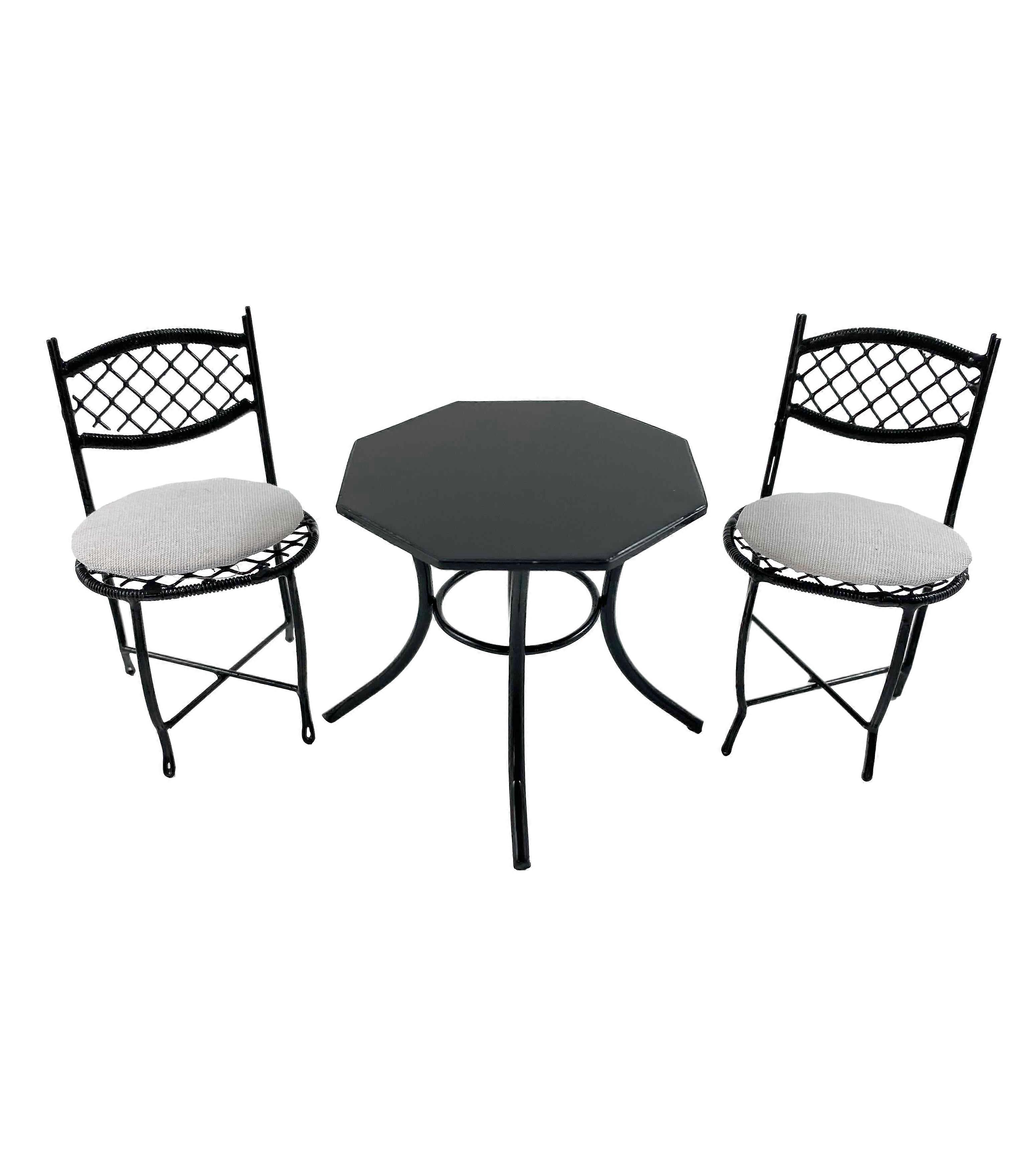 Dolls House Black Wrought Iron Bistro Table Set Miniature Garden Patio Furniture