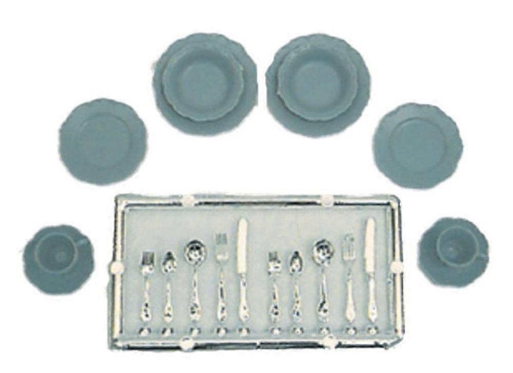 Dolls House Blue Dinnerware & Cutlery Set Miniature Chrysnbon Dining Accessory