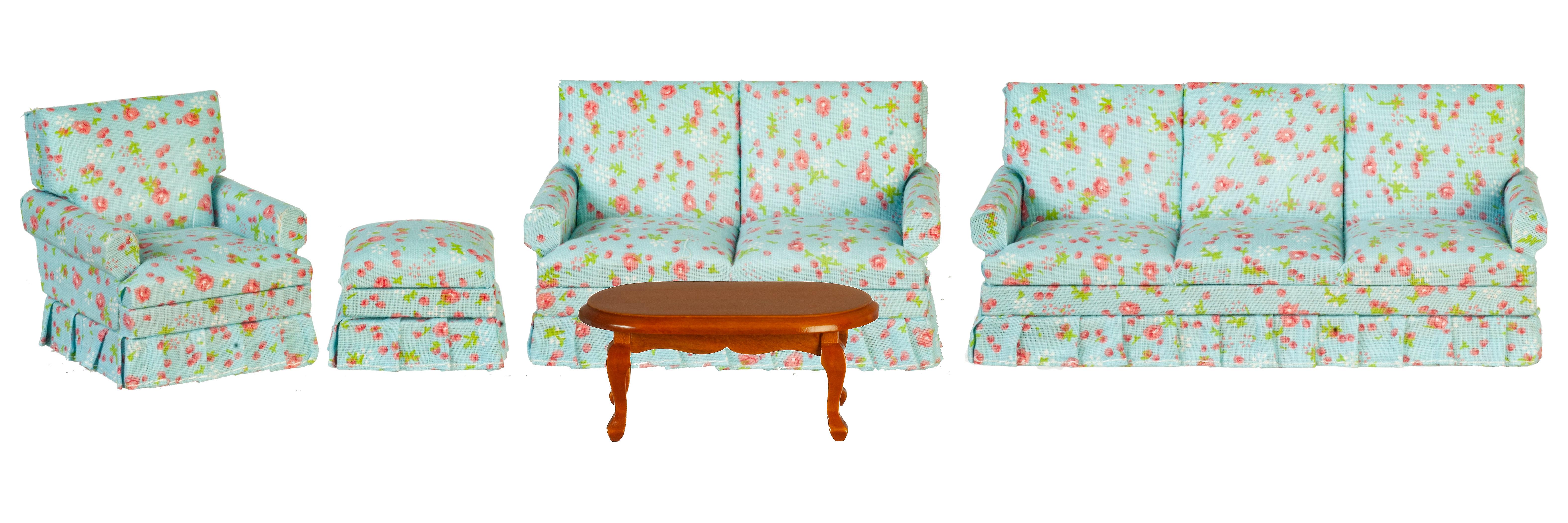 Dolls House Blue Floral Country Cottage Miniature Living Room Furniture Set 1:12