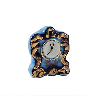 Dolls House Blue Gold Mantle Clock Ceramic 1:12 Scale Accessory