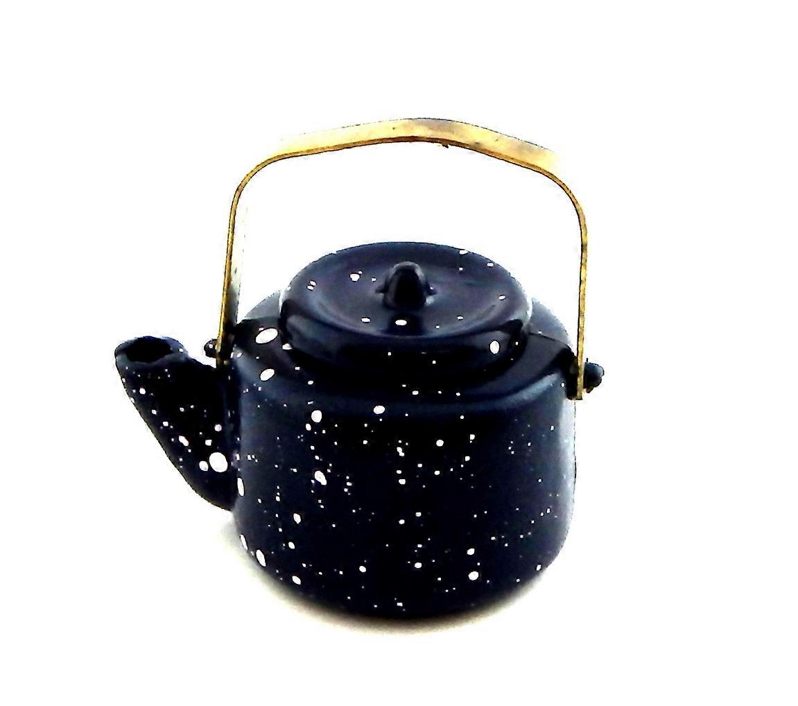 Dolls House Blue Spotted Kettle Miniature 1:12 Scale Metal Kitchen Accessory