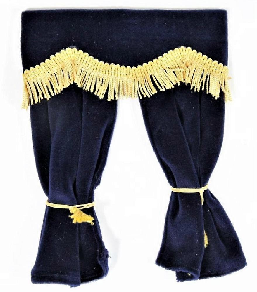 Dolls House Blue Velvet Curtains Gold Fringe Window Accessory