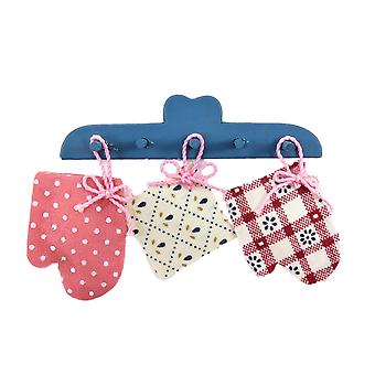 Dolls House Blue Wall Rack With Hanging Oven Gloves & Cloth Kitchen Accessory