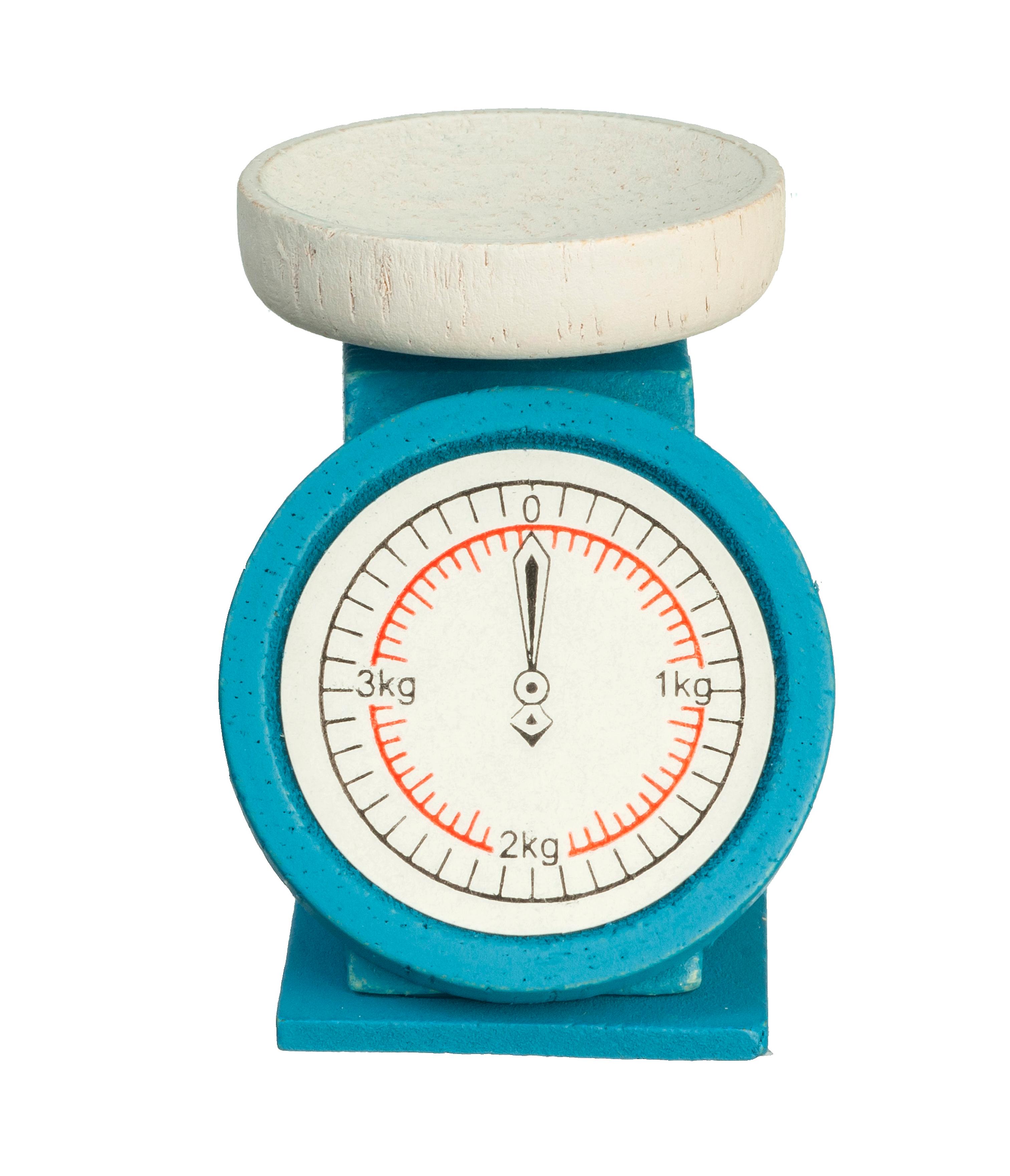 Dolls House Blue Wooden Weighing Scales Miniature Kitchen Grocery Shop Accessory