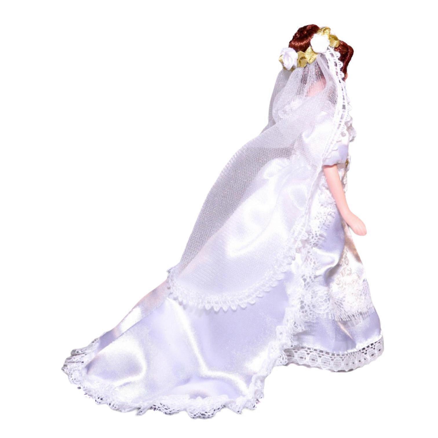 Dolls House Brunette Bride With Veil Porcelain Wedding Figure 1:12 Lady Woman