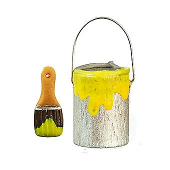 Dolls House Can Tin Of Yellow Paint & Brush Miniature Accessory Tools Diy 1:12
