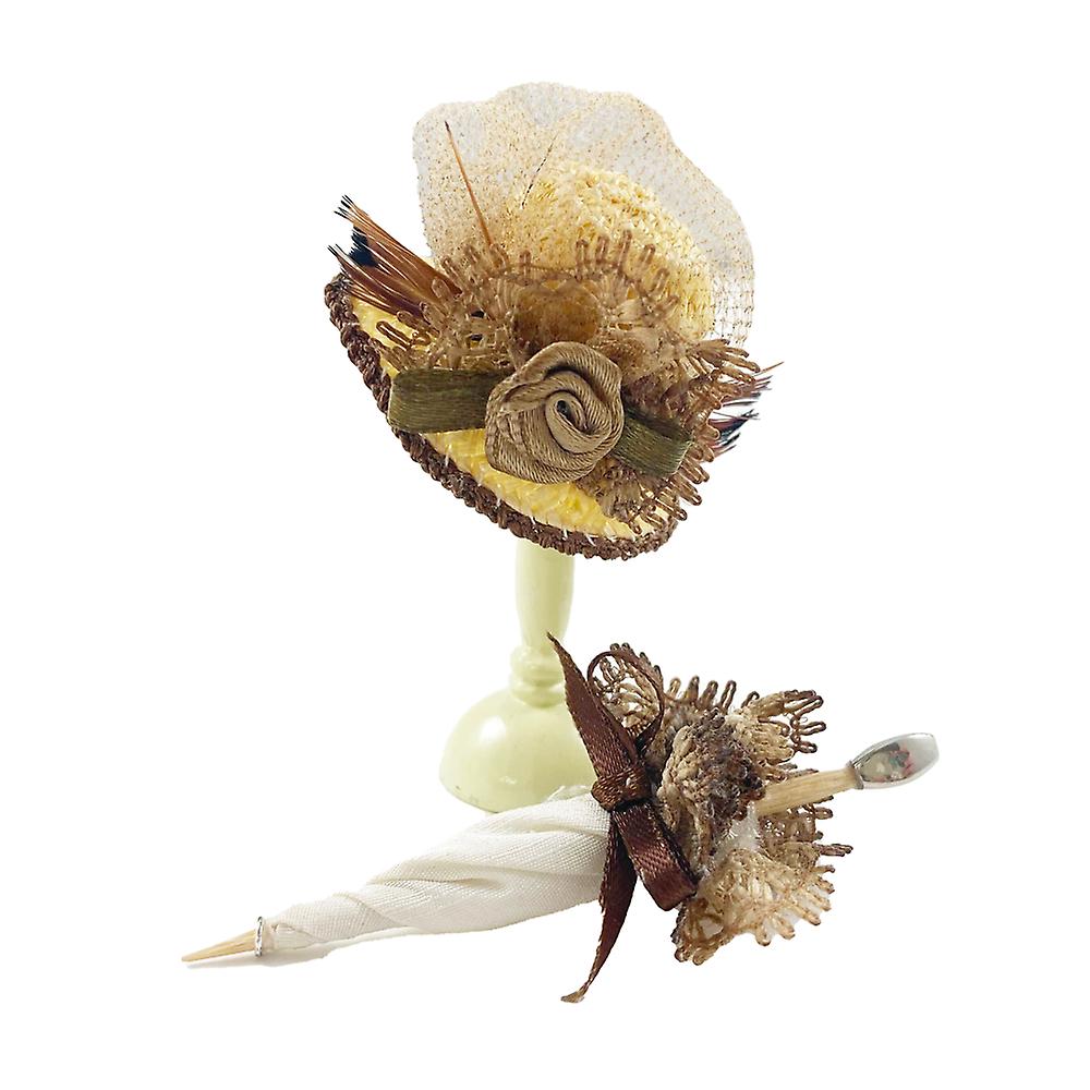 Dolls House Coffee Lady's Feather Hat & Parasol Miniature Victorian Accessory