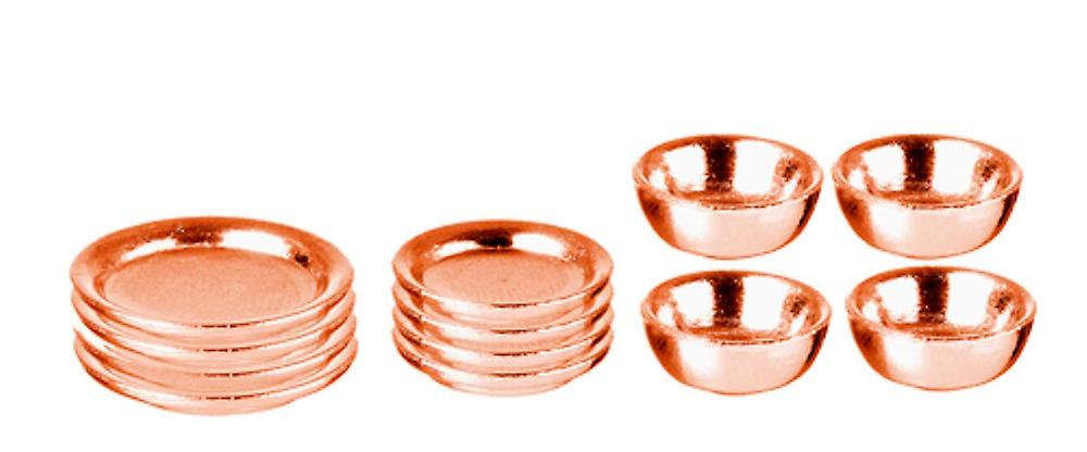Dolls House Copper Plate & Dish Set Miniature Metal Dining Accessory