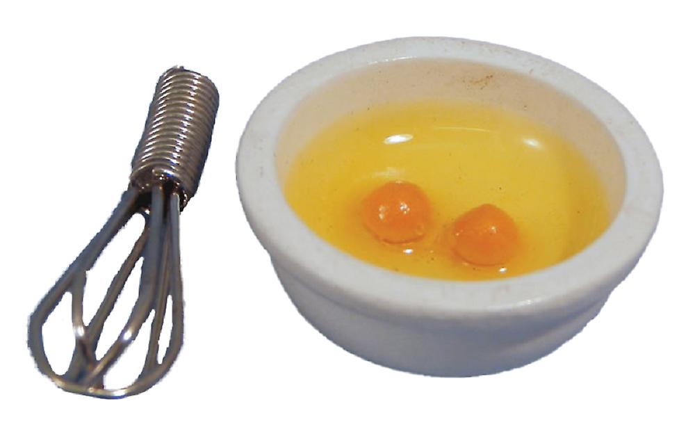 Dolls House Cracked Eggs In Bowl & Whisk Miniature 1:12 Kitchen Accessory