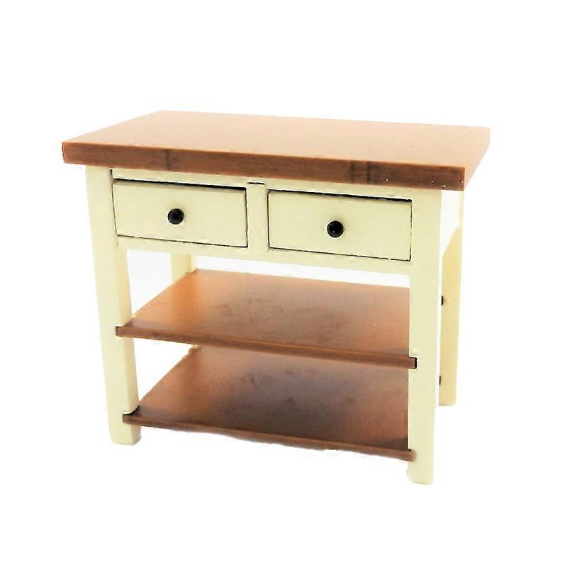 1:12 Scale - Cream Shaker Style Island - Wooden - Approximate Length 90mm - Depth 52mm - Height 76mm = 4.1/2 X 2 X 3 Inches