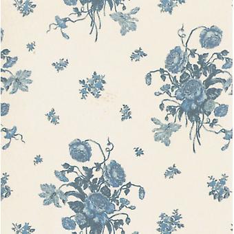 Dolls House Cream And Blue Rio Dante Miniature Print 1:12 Wallpaper 3 Sheets