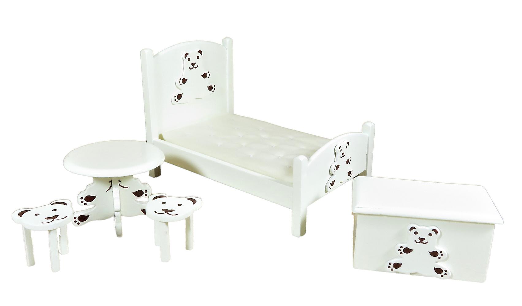 Dolls House Cream Teddy Bear Bedroom Nursery Furniture Set With Childs Bed