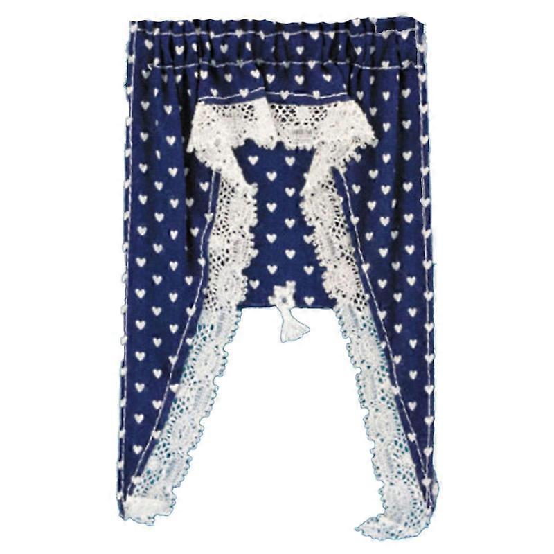 Dolls House Dark Blue Tiffany Heart Curtains Miniature Accessory