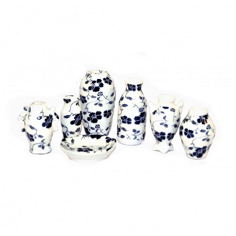Dolls House Decorative Shaped Set Of Matching Vases Blue & White Ornaments