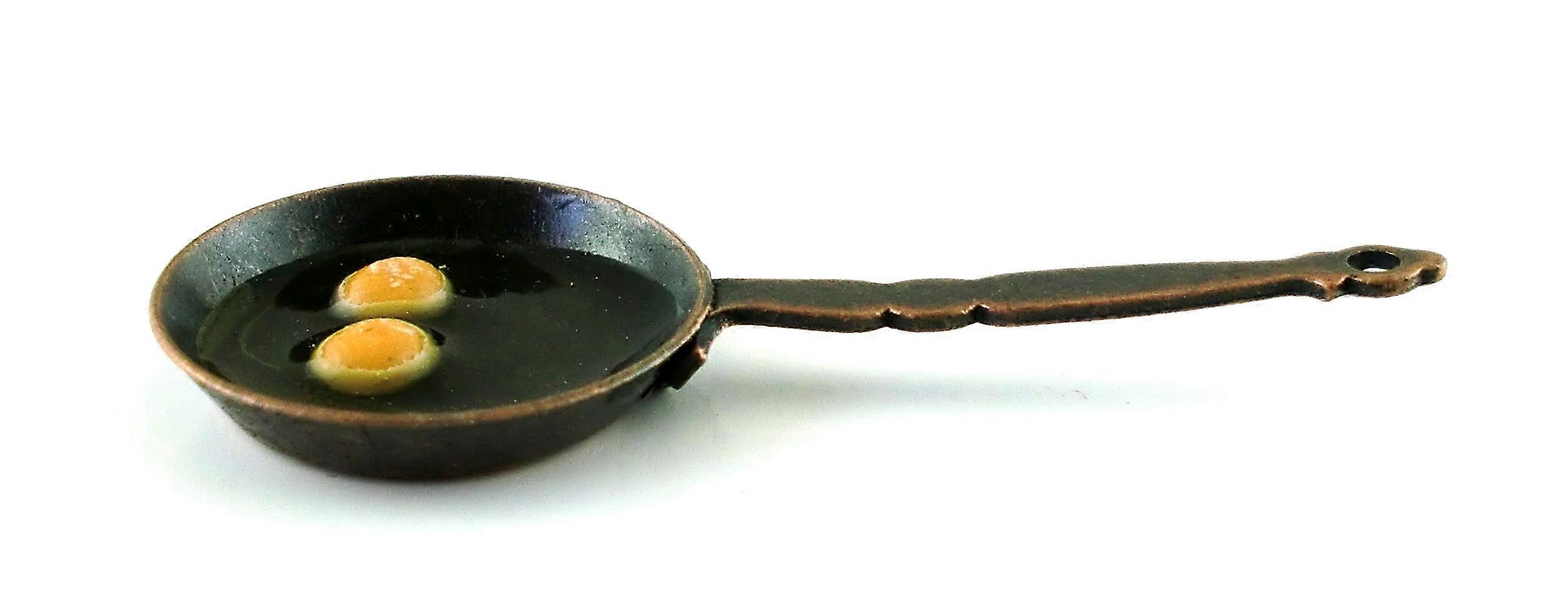 Dolls House Eggs In Copper Frying Pan Miniature 1:12 Scale Kitchen Accessory