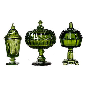 Dolls House Emerald Green Candy Dishes Chrysnbon Miniature Ornaments