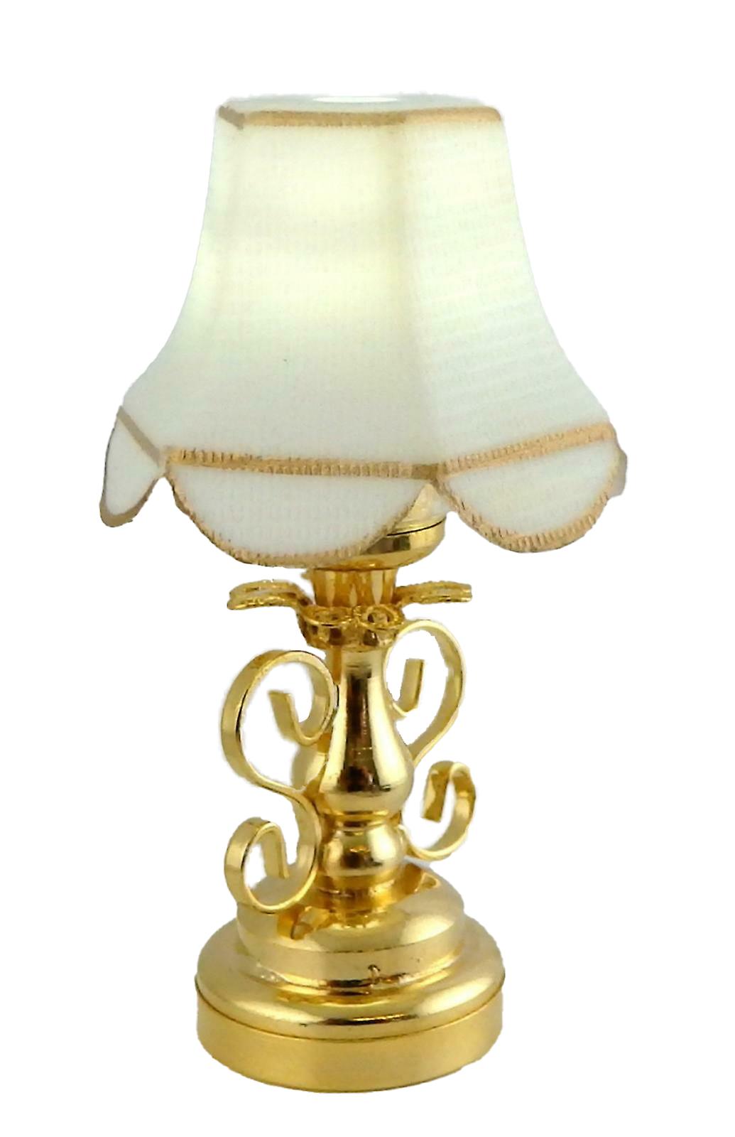 Dolls House Fancy Brass Table Lamp Classic Shade Led Battery Miniature Lighting