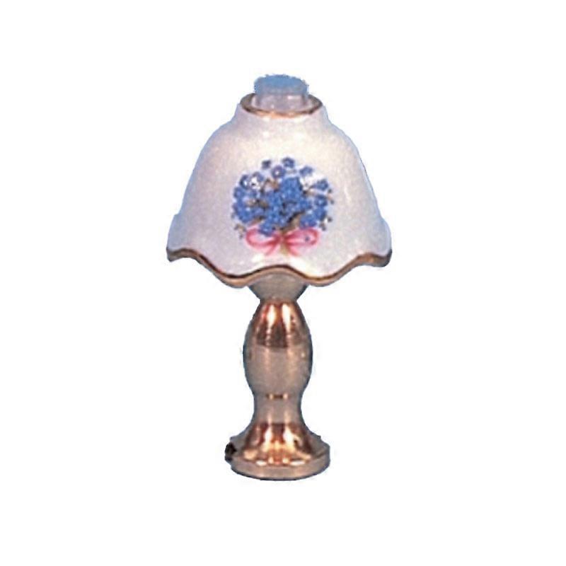 Dolls House Gold & White Forget Me Not Table Lamp 12v Electric Lighting
