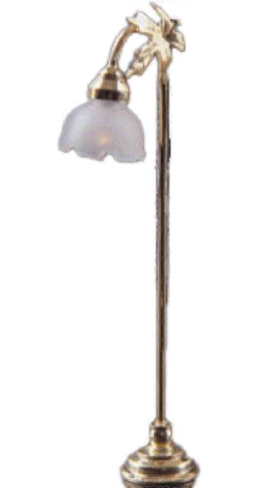Dolls House Gold Brass Floor Light White Fluted Shade Electric Standard Lamp 12v