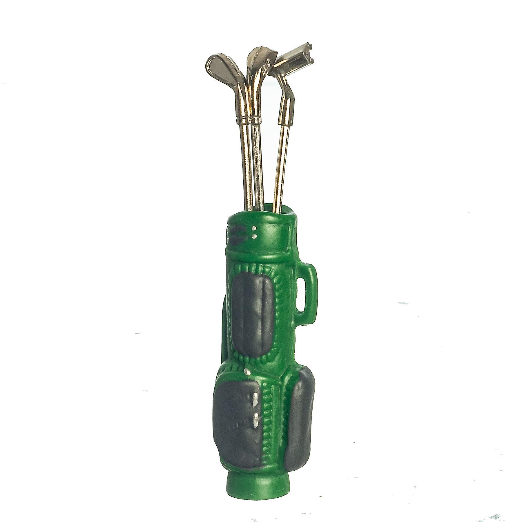 Dolls House Golf Caddy & Clubs Outdoor Sports Set Game Green Bag Accessory