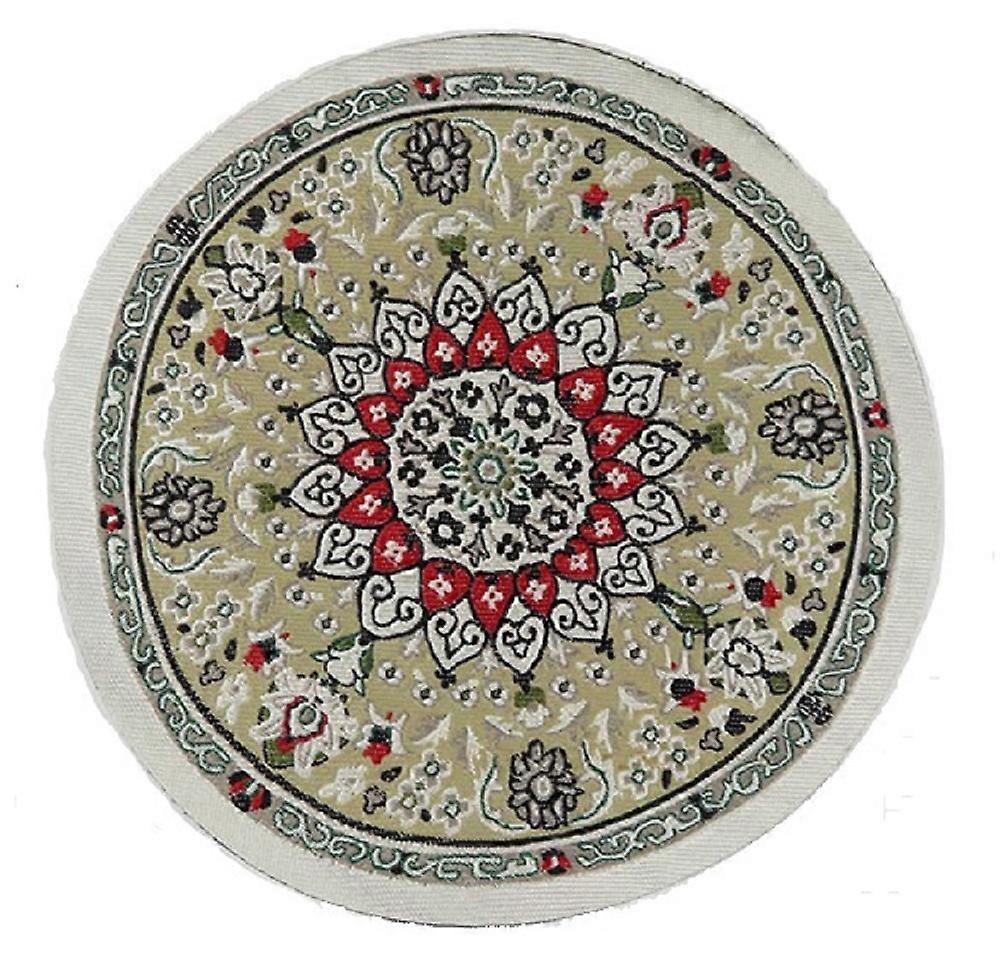 Dolls House Green Beige Circular Rug Miniature Round Turkish Woven Carpet Medium