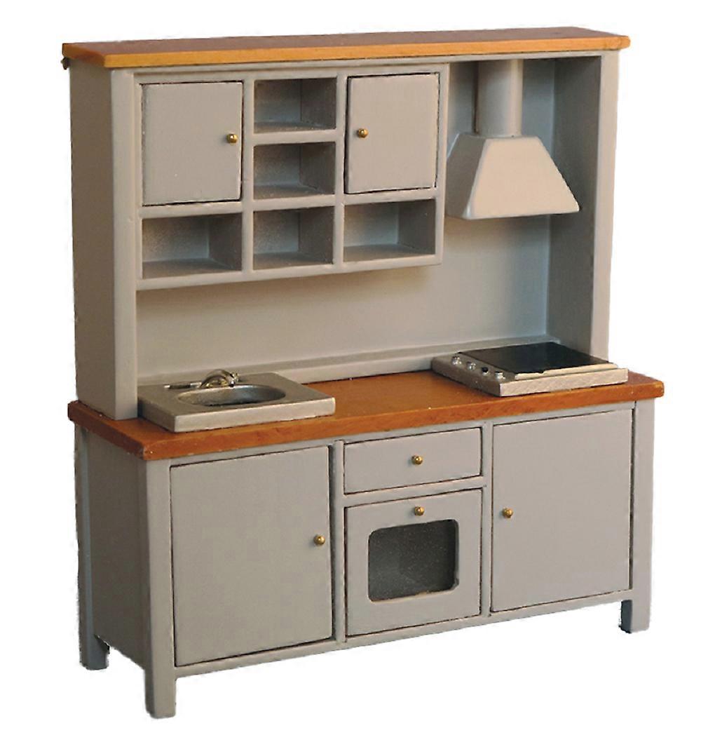 Dolls House Grey & Pine Complete Modern Kitchen Unit With Sink Oven & Hob