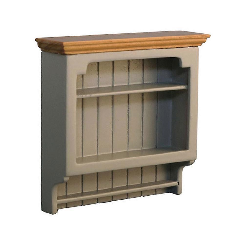 Dolls House Grey & Pine Wall Shelf Unit Modern Miniature Kitchen Furniture