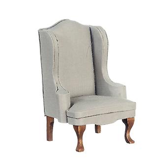 Dolls House Grey & Walnut Wing Armchair Miniature Gray Living Room Furniture