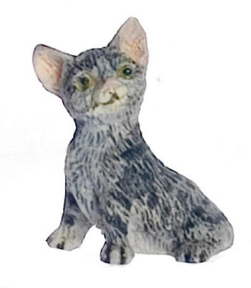 Dolls House Grey Kitten Sitting Falcon Miniature Accessory Pet Cat 1:12 Scale