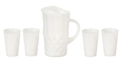 Dolls House Jug & Tumbler Set White Pitcher With Glasses Chrysnbon Dining Accessory