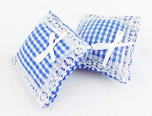 Dolls House Lace Trimmed Blue Gingham Cushions Miniature 1:12 Scale Accessory