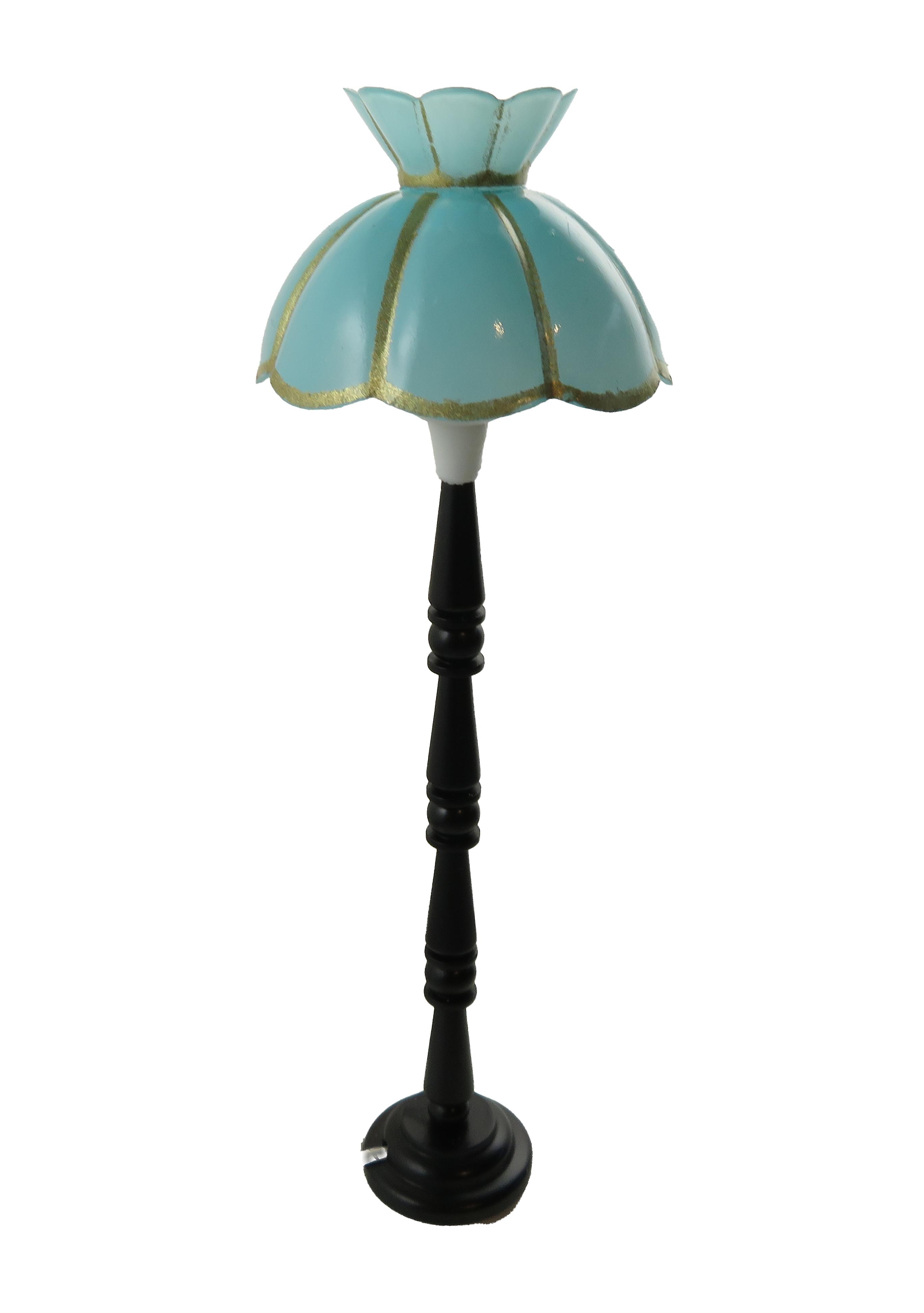 Dolls House Light Blue And Gold Shade Floor Light Electric Standard Lamp 12v