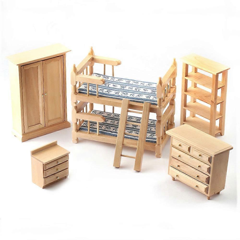 Dolls House Light Oak Bedroom Furniture Set With Bunk Bed 1:12 Scale