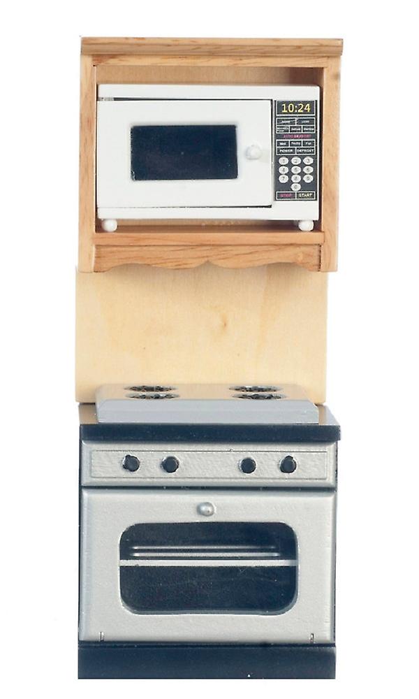 Dolls House Light Oak Fitted Unit Oven Hob Microwave Miniature Kitchen Furniture