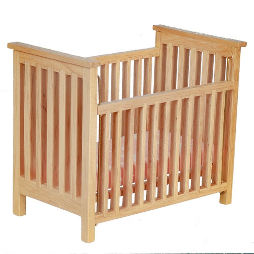 Dolls House Light Oak Slatted Cot Crib Miniature 1:12 Nursery Baby Furniture