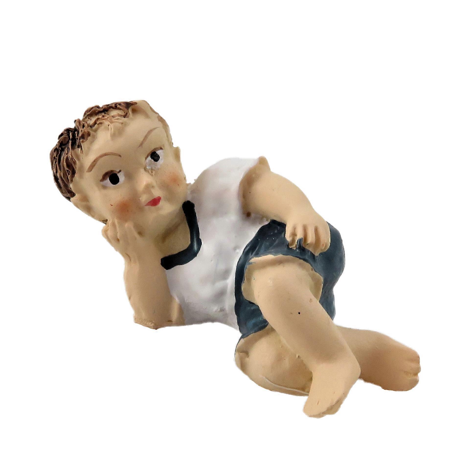 Dolls House Little Boy Lying Down White Top 1:12 People Resin Modern Figure