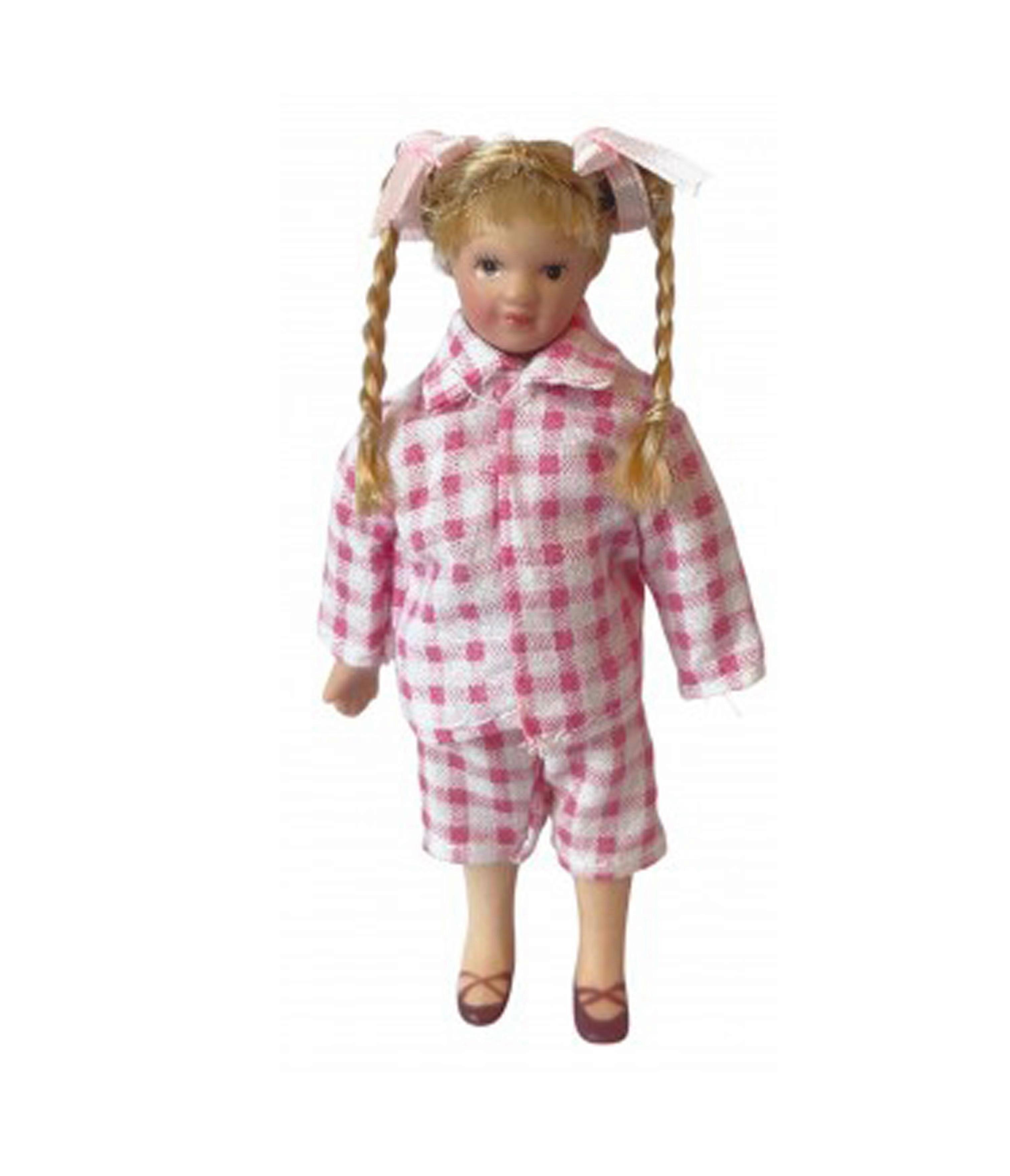Dolls House Little Girl In Pink & White Pyjamas Porcelain 1:12 Scale People