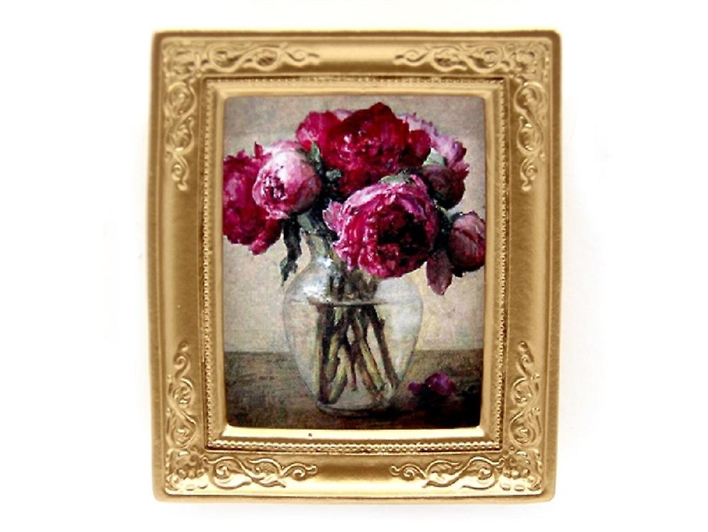 Dolls House Manet Pink Flowers Picture Painting Gold Frame Miniature Accessory