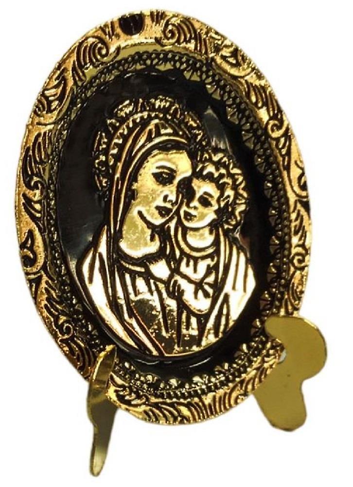 Dolls House Mary & Jesus Portrait Plate On Stand Embossed Religious Ornament