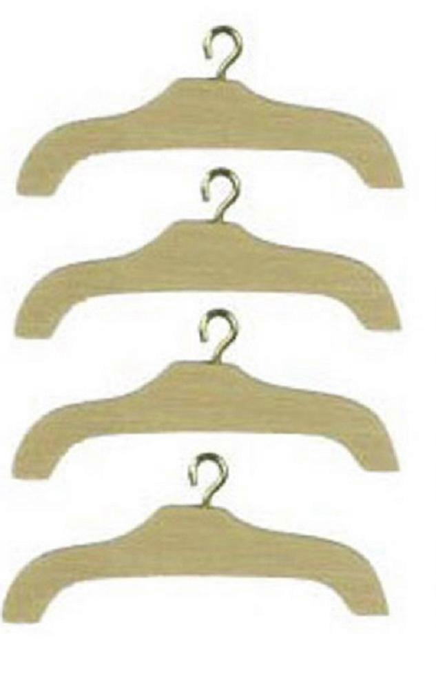 Dolls House Miniature 1:12 Bedroom Wardrobe Accessory 4 Wooden Coat Hangers