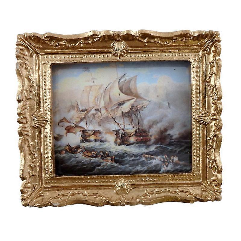 Dolls House Miniature Accessory Battle At Sea Painting Gold Frame