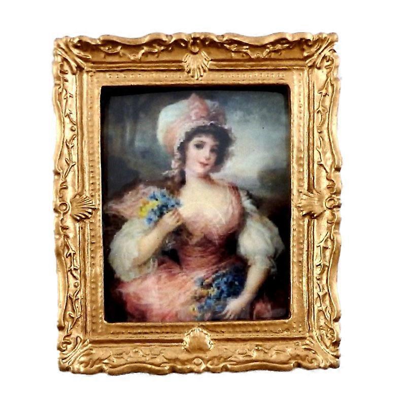 Dolls House Miniature Accessory Lady In Pink Painting Gold Frame