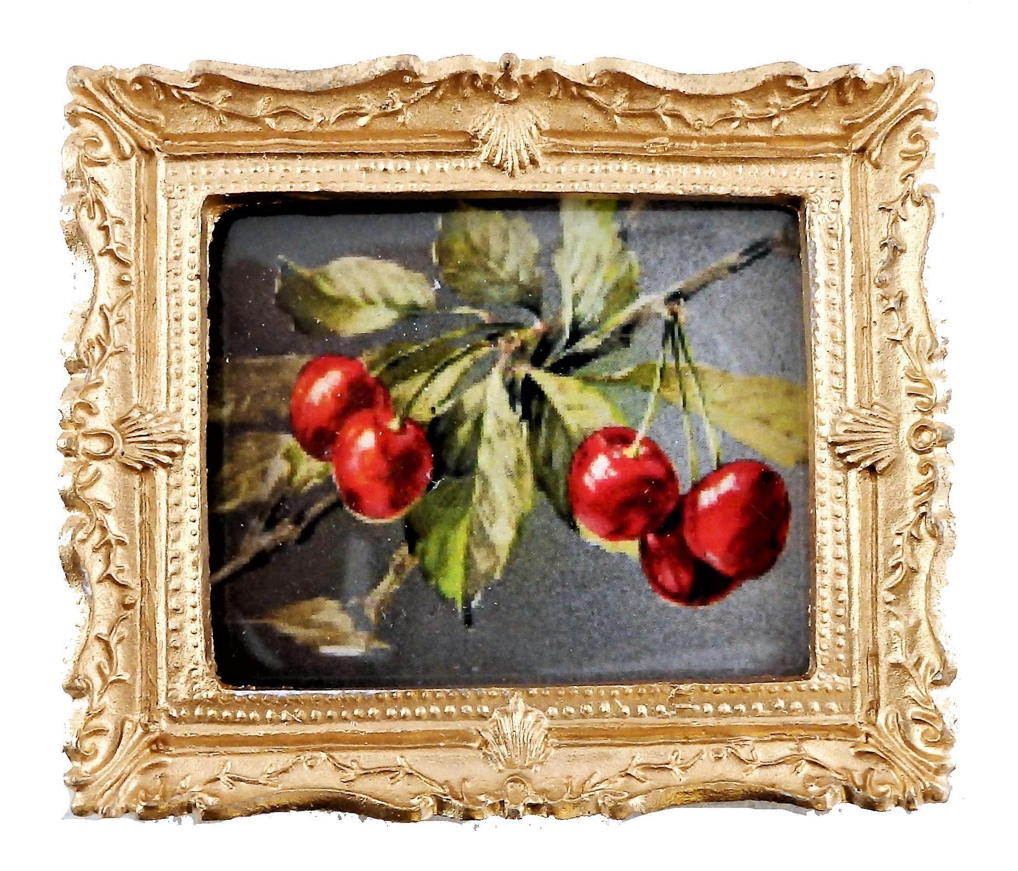 Dolls House Miniature Cherries On A Branch Painting Gold Frame