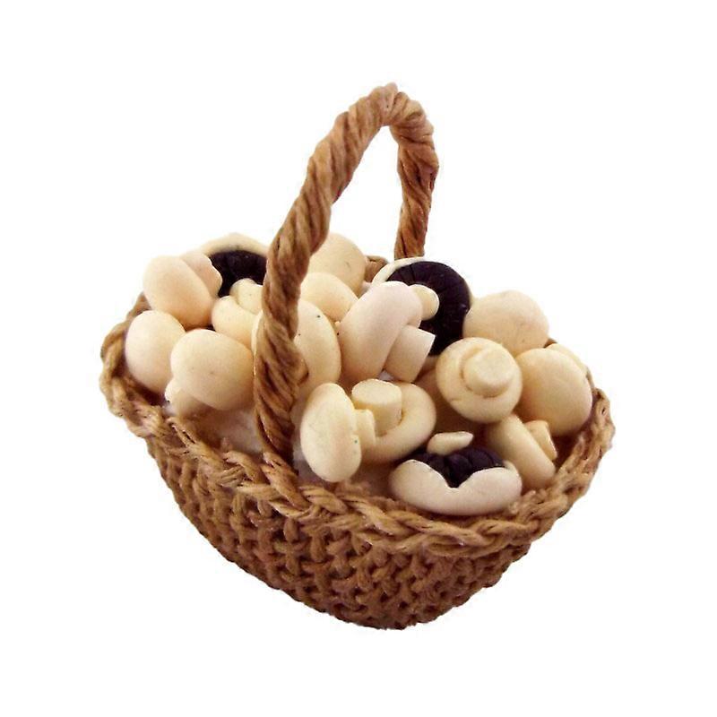 Dolls House Miniature Country Kitchen Accessory Hand Made Basket Of Mushrooms